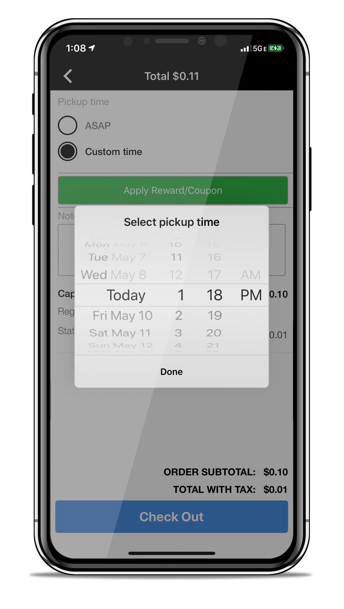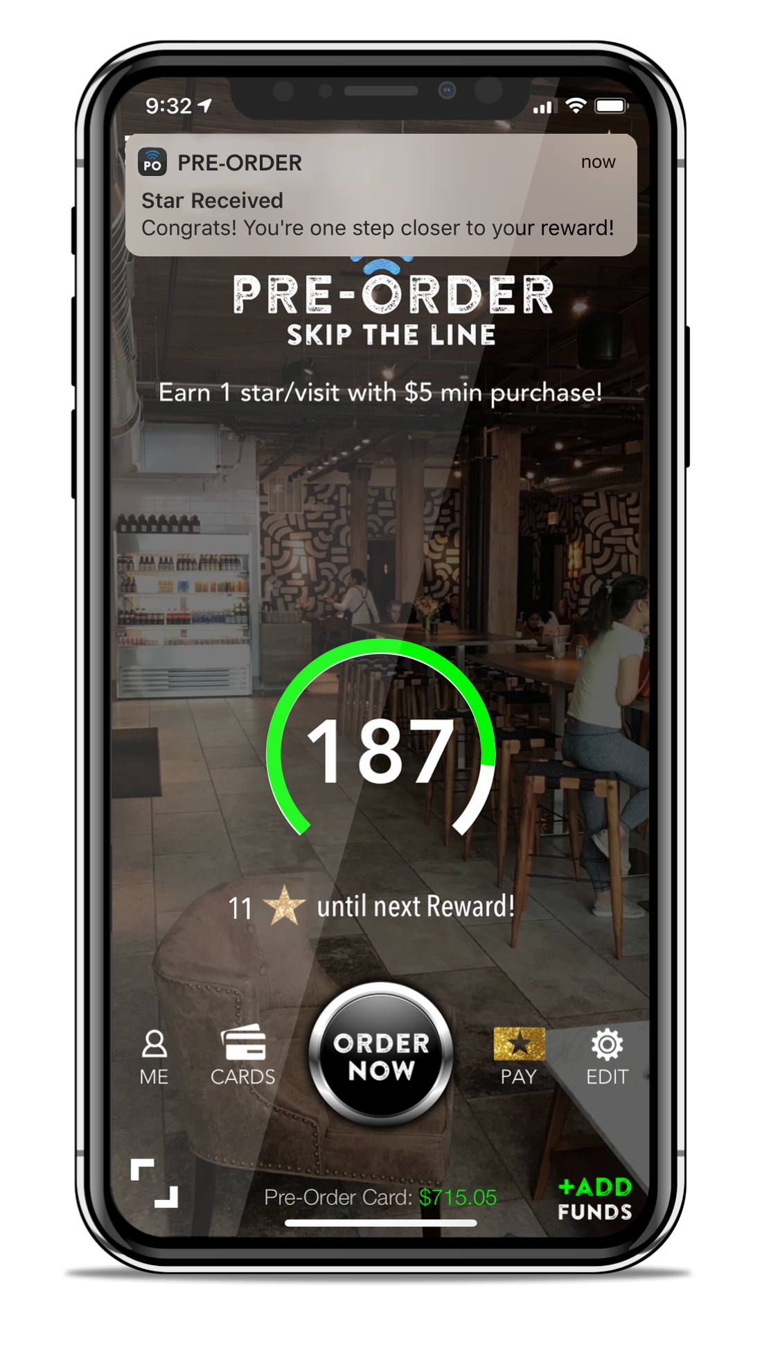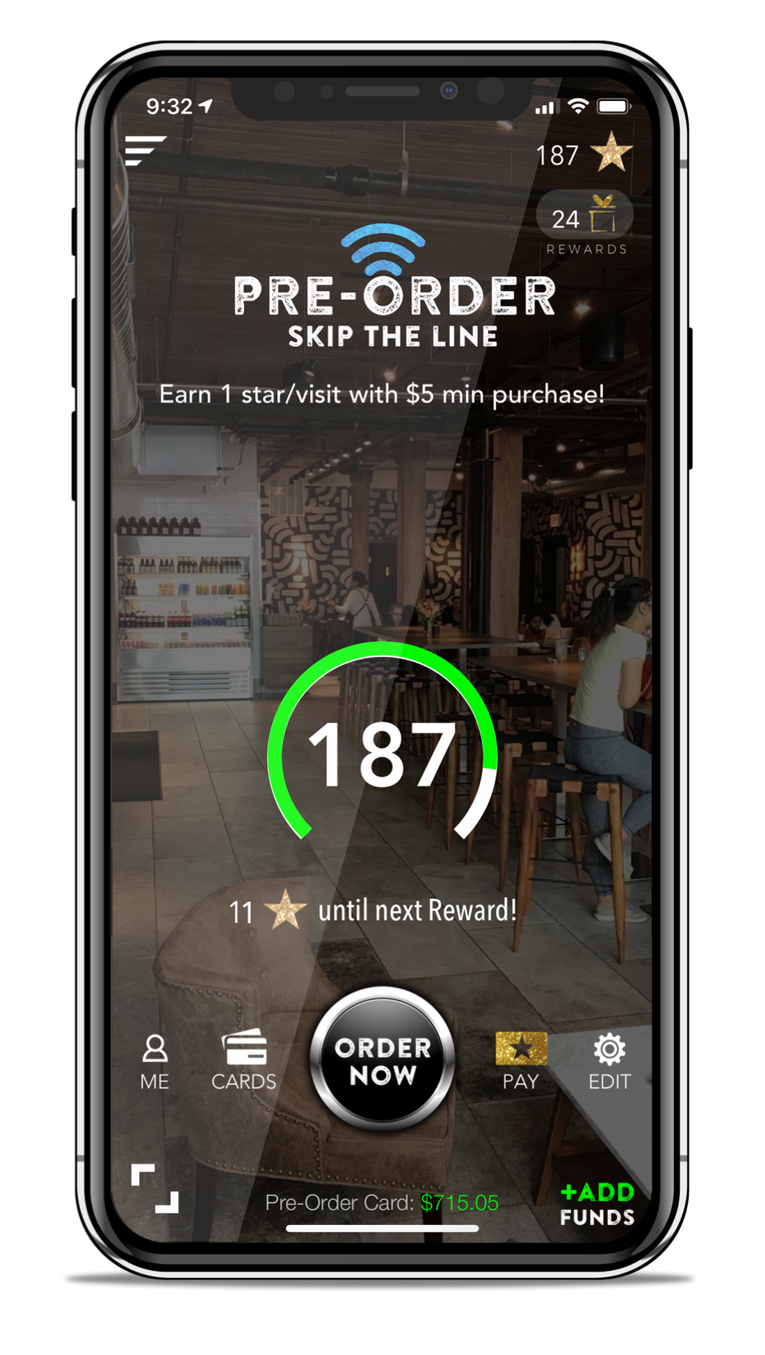 Download the Pre-Order App, then click the little scan icon at the bottom left to test our “check-in” and