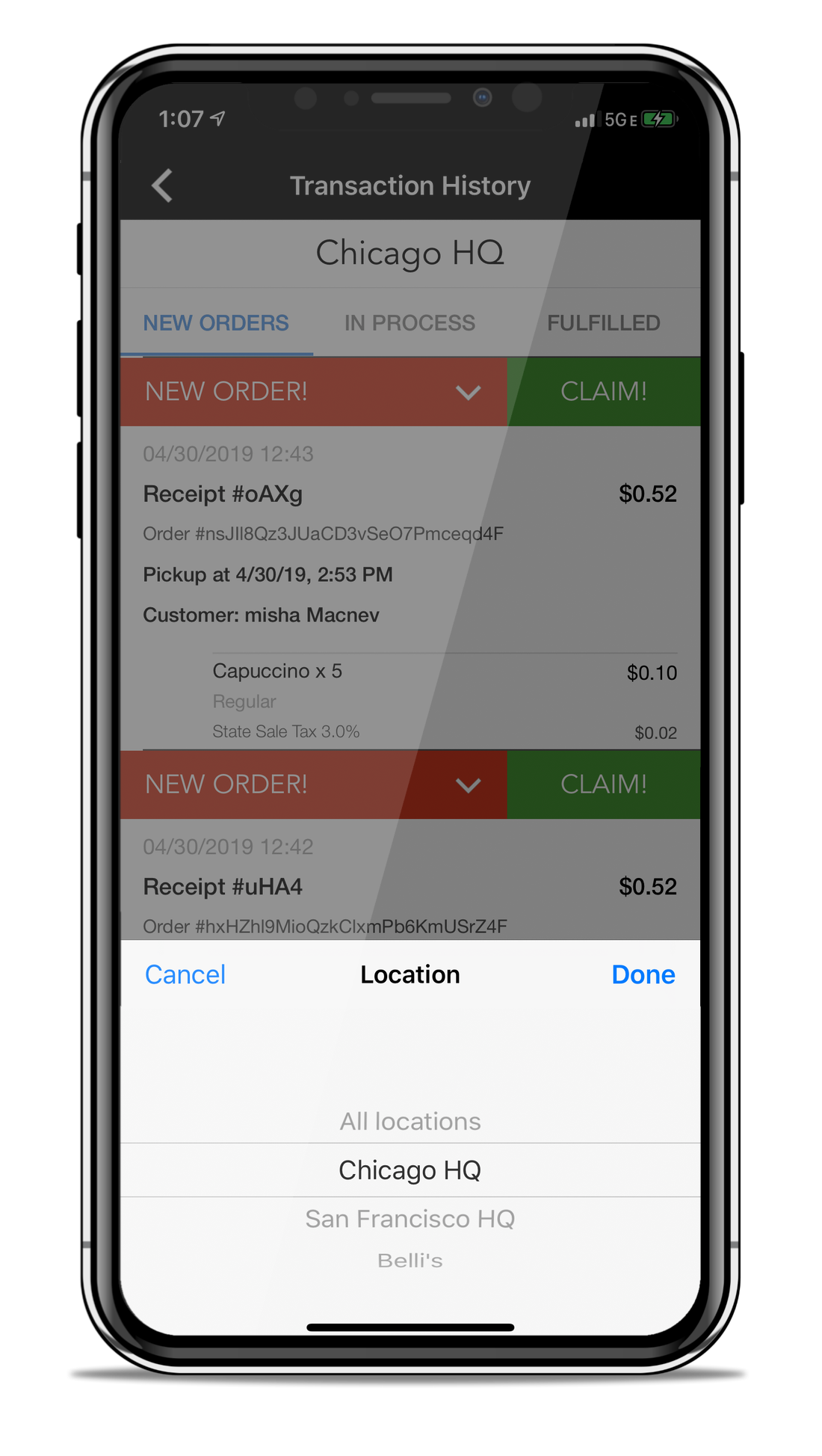 3 Tabs organize your orders: New Orders | In Process | Fulfilled. And, it takes just one tap (of the green CLAIM button)