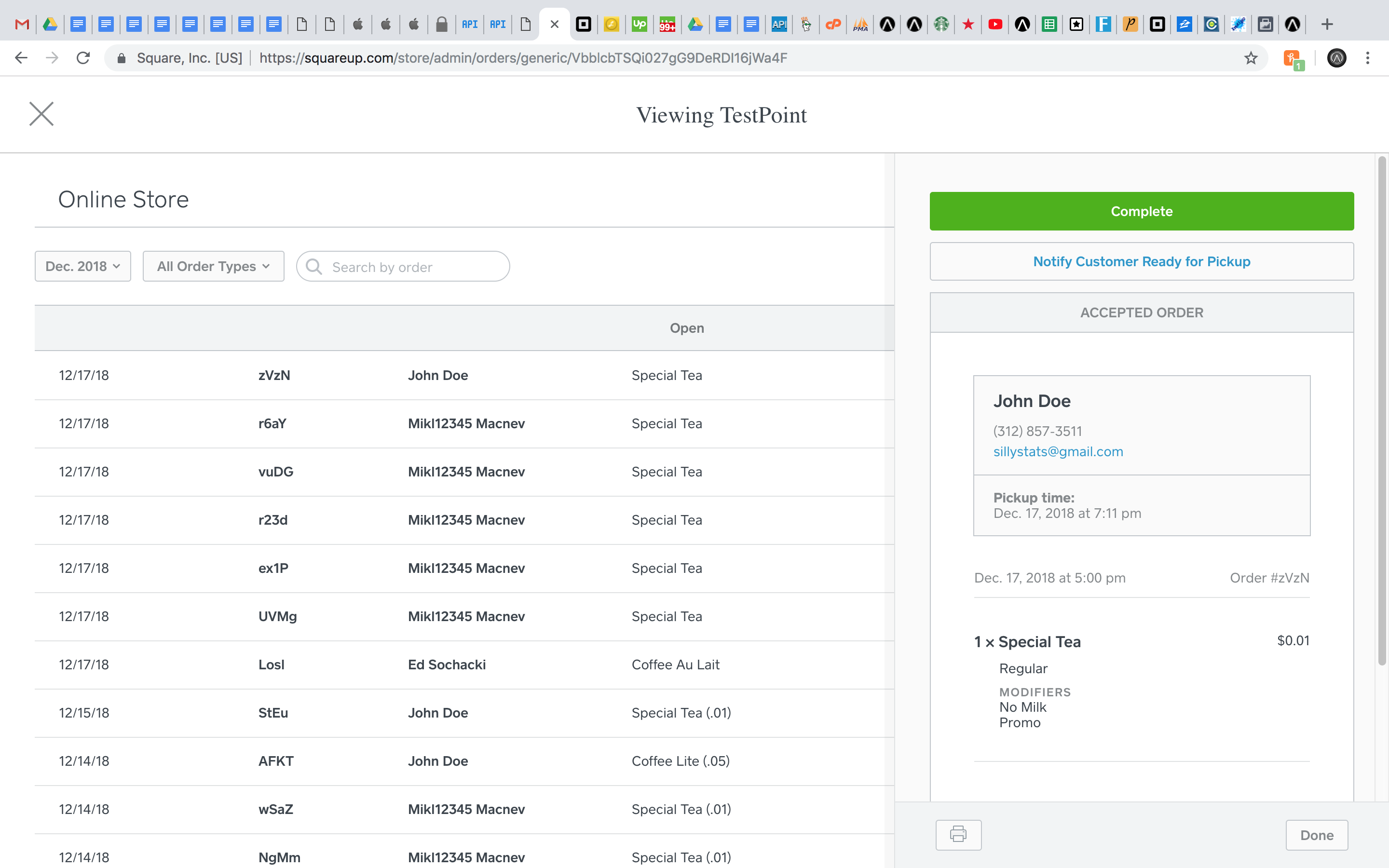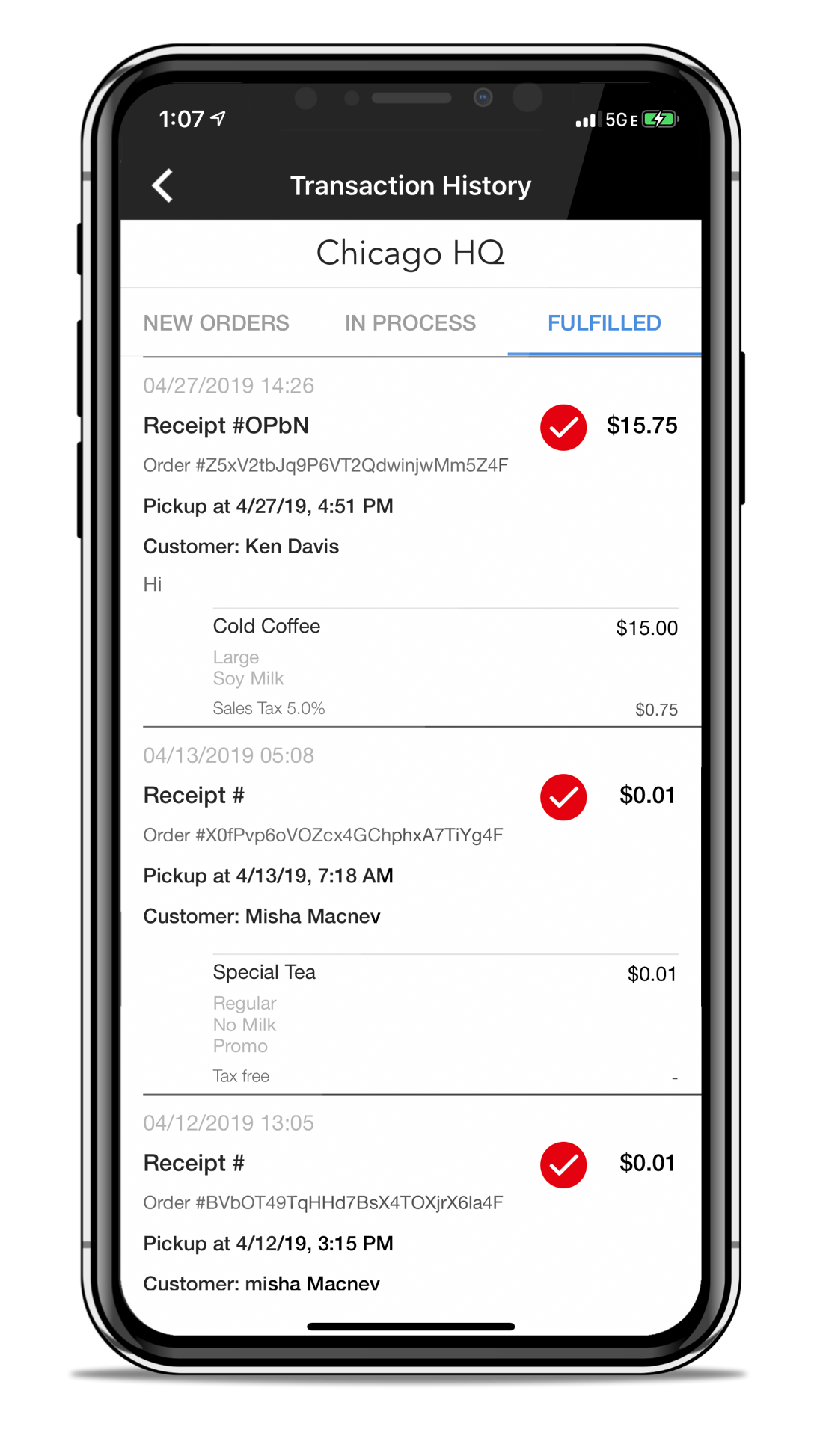 to move an order to In Process - and a 2nd tap to set it to Fulfilled. You can even click-to call, text or email the