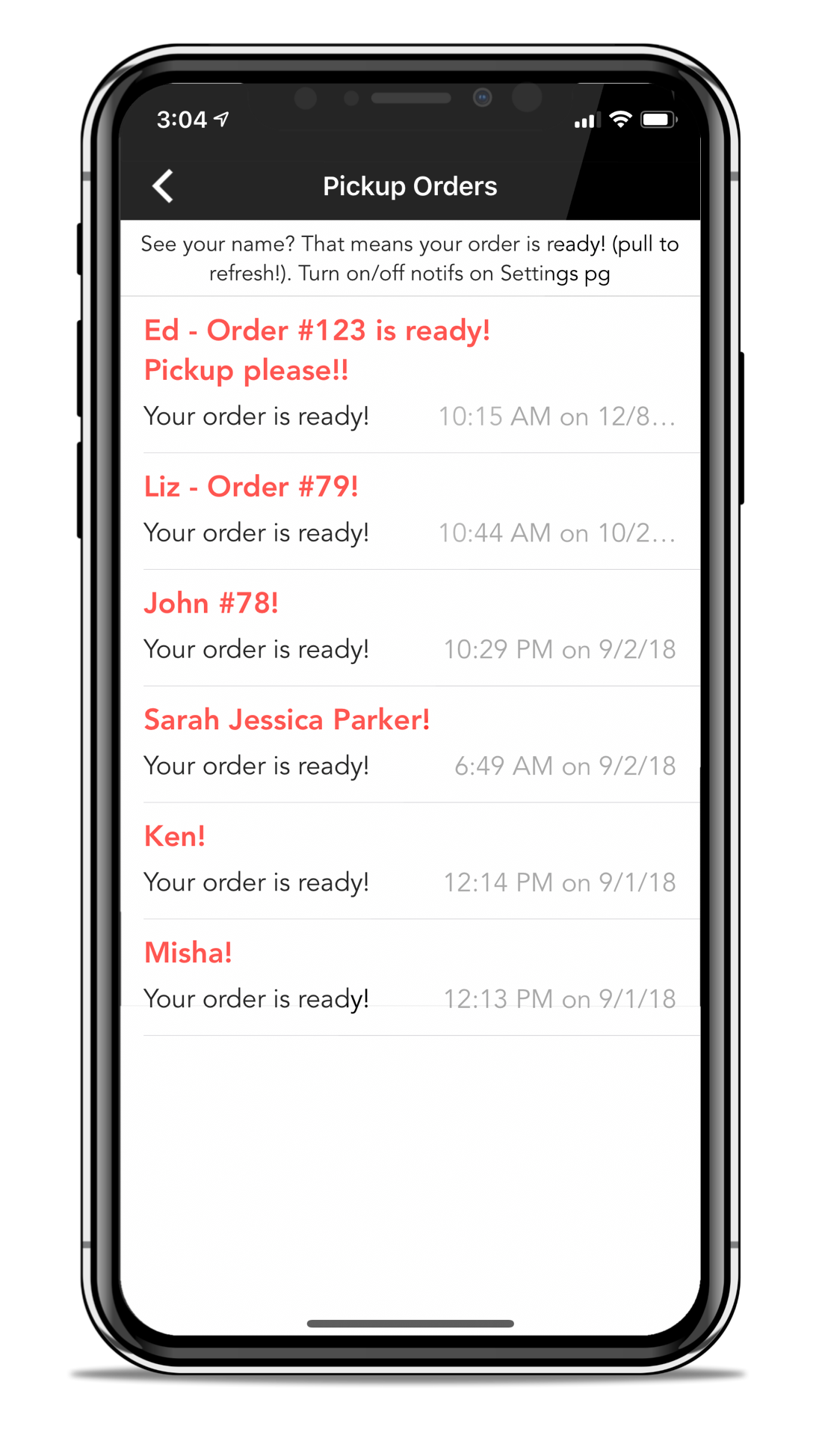 When an Order is set to Fulfilled, an automatic push notification is sent to the Customer’s mobile phone